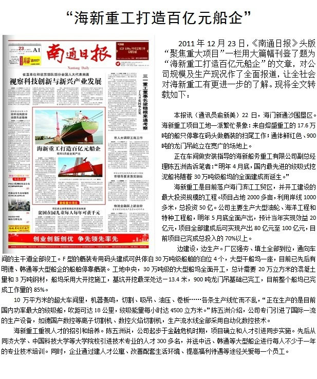 您好,歡迎訪問海新重工打造百億元船企-公司新聞-江蘇海新船務(wù)重工有限公司-江蘇海新船務(wù)重工有限公司網(wǎng)站!