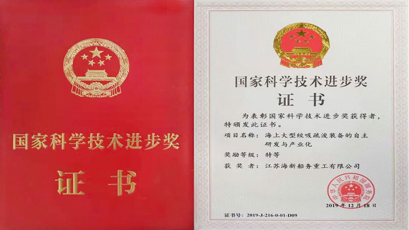 江蘇海新、江蘇海宏參與合作完成的海上大型絞吸疏浚裝備的自主研發(fā)與產(chǎn)業(yè)化獲2019年度國家科學(xué)技術(shù)進步特等獎。...