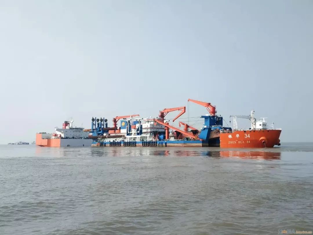 The world’s leading non-self-propelled cutter suction dredger “New Haiteng”, invested by Jiangsu Haihong Construction Engineering Co., Ltd and built by Jiangsu Haixin Shipping Heavy Industries Co., Ltd, sailed for Bangladesh for participating the Construction of docks and ports in countries along the Belt and Road after submerged loaded on “Zhenghua 34” from Nantong Langshan anchorage.
